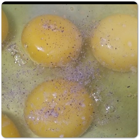 야채를 최대한 잘 다졌다면 이제 계란을 풀도록 합니다. 계란 양은 2명 기준으로 5개 정도 풀면 적당합니다. 그때그때 해먹을거라면 2~3개 정도 깨트리는 것도 괜찮습니다. 볼에 계란을 깨트려서 넣은 뒤 소금과 후추를 넣어서 간을 해주도록 합니다.