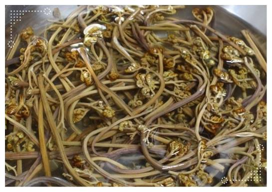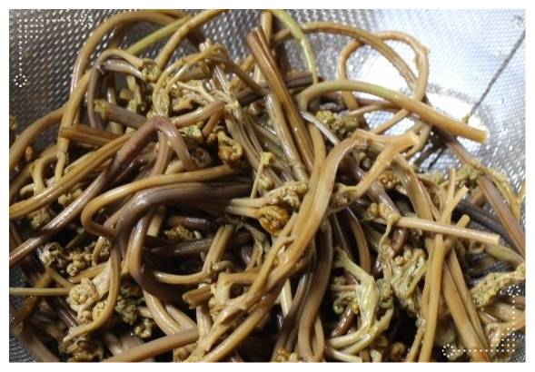 여러 번 확인 후 고사리가 제대로 불었다면 그때 고사리를 건져내도록 합니다. 그리고 흐르는 물에 2~3번 정도 깨끗하게 씻어줍니다.