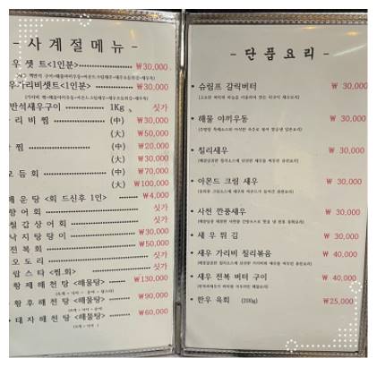 2층을 계단 통해 올라가면 전부 통으로 된 벽면이어서 바로 앞 바다를 보면서 음식을 즐길 수 있습니다. 간판은 1, 2층으로 구분되어서 적혀 있지만 실제는 층수 상관없이 1, 2층 아무데서나 육류 및 해산물 드실 수 있습니다. 단품요리(예로 해산물), 파스타류, 식사류 등 구체적으로 나뉘어있으니 여행갔을 때 꼭 가서 드셔보시기 바랍니다.