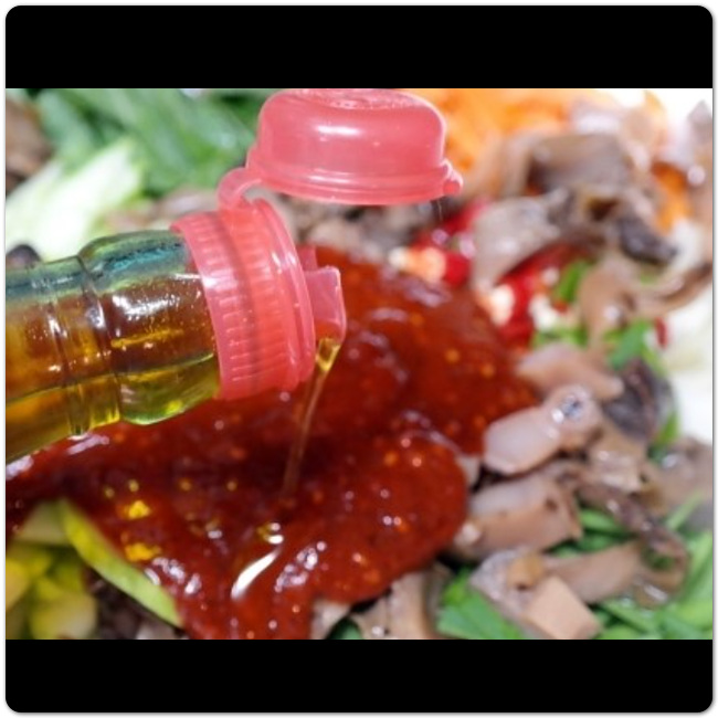 일단 무침을 위한 양념장을 만들도록 합니다. 양념장은 미리 만들어놓은 뒤 냉장고에 숙성시키고 있으면 나중에 무침해먹을 떄 더더욱 맛있습니다. 양념장 비율은 고추장 3숟갈 + 고춧가루 5t + 다진마늘 3t , 매실액3숟갈 + 물엿 2숟갈 + 깨소금 3t 입니다. 숟가락 기준으로 하면 됩니다. 이렇게 만든 뒤 고루고루 잘 저어주고, 만든 양념장을 냉장고에 넣어서 숙성시키면 됩니다.