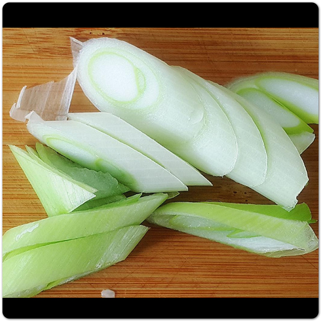 이제, 김치 수제비가 어느 정도 익어가기 시작하면 대파를 송송 썰도록 합니다. 미리 얼려놓은 대파가 있으면 이때 꺼내면 됩니다. 이렇게 준비한 대파를 끓고 있는 김치수제비에 살짝 넣으면 얼큰하고 맛있는 국물요리가 완성됩니다. 대파 또한, 너무 오랫동안 끓이면 흐물흐물해지므로 제일 마지막에 넣고 1분 정도만 더 끓인 뒤 바로 불 끄면 됩니다.