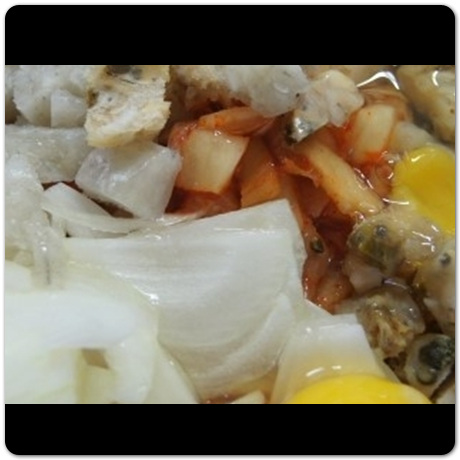 김치전 맛있게 하는 법 이제 냉동실에 있는 재료를 활용할 차례입니다. 얼린 새우나 조개살이 있다면 김치전에 활용하면 좋습니다. 혹은, 냉동실에 얼린 오징어가 있다면 그것 또한 김치전 해먹을 때 활용하면 됩니다. 냉동실에 무엇이 있는지 확인한 후 함께 활용하도록 합니다. 일단 저는 냉동실에 얼린 새우와 조개살이 있었으므로 이걸 먹기 좋은 크기로 잘 썰어서 볼에 함께 넣어줬습니다. 건새우가 있다면 건새우를 넣어서 만들어도 맛있습니다. 만일 냉동실에 재료가 없다면 간단하게 김치와 양파만을 활용해서 만들어도 됩니다.