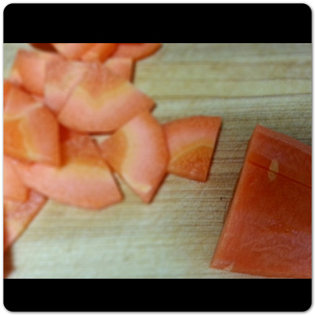 3번 과정이 완료됐다면 이제 나머지 재료도 준비합니다. 당근도 나박 썰기를 해줍니다. 다만, 당근은 나박김치할 때 많이 들어가면 김치가 조금 지저분해보일 수 있으니 조금만 썰어주도록 합니다. 그 뒤, 준비한 배나 사과도 껍질을 깎은 뒤 나박나박 네모모양으로 썰어줍니다.