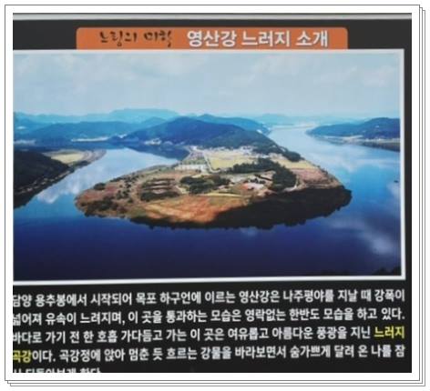 이 곳 전망대에 가면 영산강 물줄기를 한 눈에 꿰차고 볼 수 있습니다. 예전에는 비포장도로였지만 지금은 도로포장공사를 깔끔하게 해서 좀 더 수월하게 갈 수 있습니다. 전망대 주변 데크도 잘 조성되어 있어서 산책하기에도 좋으니 이 곳도 가보시기 바랍니다.