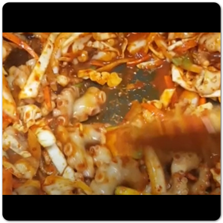 팁) 만일 조금 더 탱글탱글한 낙지를 원한다면 낙지만 미리 끓는 물에 한 번 살짝 데쳐주면 됩니다. 그럼 수분감 없는 낙지볶음을 만들 수 있습니다.
