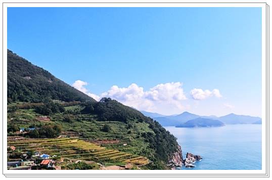 주차하고 난 뒤 바로 마을이 이어지는 것이 아니라 마을까지는 한참을 걸어가야 하기 때문에 자가용을 활용해서 들어가도 됩니다. 다랭이 마을의 전망대까지 길 따라 쭉 올라가면 전체 경관을 내려다볼 수 있습니다.