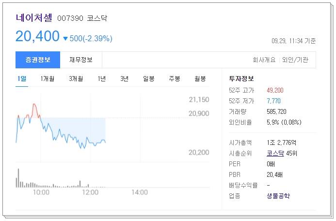 시가총액은 1조 2776억원으로 코스닥 45위에 해당합니다. 이상 네이처셀 주가 전망이었습니다. 아래는 또 다른 기업의 현 흐름이기 때문에 관심있는 분들은 살펴봐주시기 바랍니다.