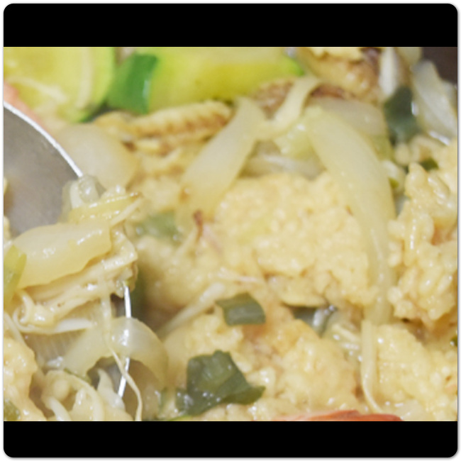누룽지탕 만드는 법 재료들을 잘 섞어줬다면 이제 녹말가루를 찬물에 풀어줄 차례입니다. 집에 녹말가루가 없다면 밀가루를 활용해도 괜찮습니다. 찬물에 풀어서 좀 전에 볶아준 야채 위에 그대로 부어주면 됩니다. 대신 녹말을 조금만 넣어도 완전 걸죽해지므로 너무 많이 넣지는 않도록 합니다. 참고로 너무 많이 넣으면 탕 맛이 텁텁한 맛이 납니다.