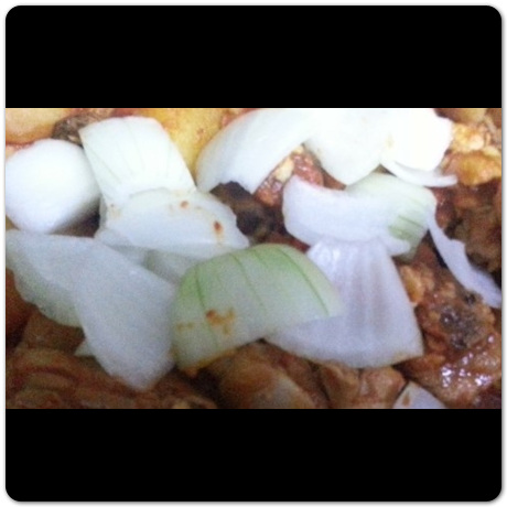 20분이 지났다면 냄비 바닥에 먼저 당근, 감자, 양파를 깔아둡니다. 그리고 물을 종이컵 한 컵 정도로만 붓고난 뒤 그 위로 재워뒀던 닭을 올려두도록 합니다. 이렇게 해서 중강불에서 끓은 뒤 끓기 시작하면 한 번 뒤적뒤적 해주도록 합니다.