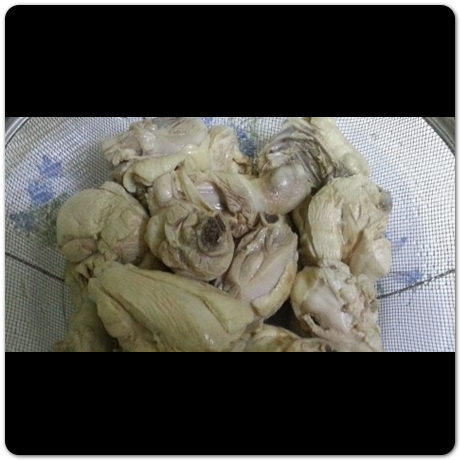 닭이 살짝 익었다면 체로 건져서 꺼낸 뒤 다시 한 번 흐르는 물에 씻어주도록 합니다.