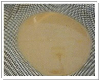 팁)그릇에 담았던 도토리가루+물을 체에 한 번 걸러주는 작업을 하면 좀 더 부드러운 도토리묵을 만들 수 있습니다. 그릇에 담겼던 도토리가루+물을 인덕션이나 가스레인지 위에 올릴 후라이팬이나 그릇에 옮겨담을 때 꼭 체에 내려서 받아주시기 바랍니다.