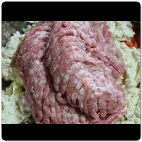 동그랑땡 맛있게 만드는법 두부까지 넣었다면 이제 거기에 다짐육을 넣도록 합니다. 돼지고기 다짐육은 정육점에서 살 때 동그랑땡할 용도로 구매하거나 마트에서 구매할 때 다짐육으로 되어 있는 고기를 사면 됩니다.