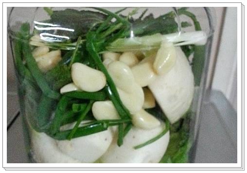 마늘과 생강을 부직포 주머니에 넣어놨다면 이제 쪽파를 돌돌 말아서 넣어주고, 삭힌 고추도 대략 15~20개 정도 넣어주도록 합니다. 그 디 배와 사과를 넣엉주면 됩니다. 굳이 껍질을 까지 않고 넣어도 되므로 사과와 배는 베이킹소다에 깨끗하게 충분히 씻어주도록 합니다.