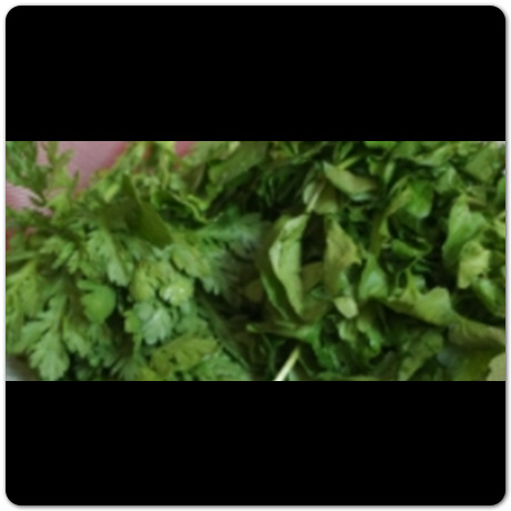 육수를 끓이고 있을 동안 나머지 재료들을 손질하도록 합니다. 양파는 깍뚝썰어주고 고추와 대파는 어슷썰어주면 됩니다. 그리고 동태탕에 들어갈 미나리와 쑥갓은 지저분한 부분은 제거하고 식초물에 담궈서 불순물이나 벌레를 제거한 다음 다시 흐르는 물에 씻어서 체반에 받쳐서 물기를 제거해주도록 합니다.