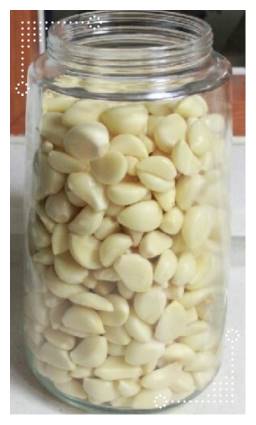 열탕 소독했던 유리용기가 깨끗하게 다 말랐다면 이제 그 곳에 마늘을 전부 넣어놓습니다.