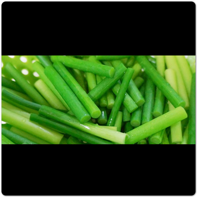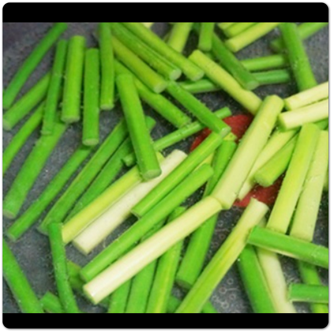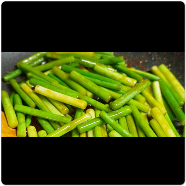 마늘쫑 조리법 먼저 마늘쫑을 손질해주도록 합니다. 마늘쫑 조리 방법은 일단 씻지 않은 상태에서 마늘쫑 끝단을 잘라주도록 합니다. 그 다음, 흐르는 물에 마늘쫑을 깨끗하게 씻어줍니다. 씻고난 뒤, 체에 받쳐서 물기를 제거해주면 됩니다. 물기 제거가 어느정도 됐다면 이제 마늘쫑을 잘라줍니다. 대략 6cm 정도면 먹기 좋은 크기고, 이 정도 사이즈면 마늘쫑을 6등분으로 잘라주면 됩니다.