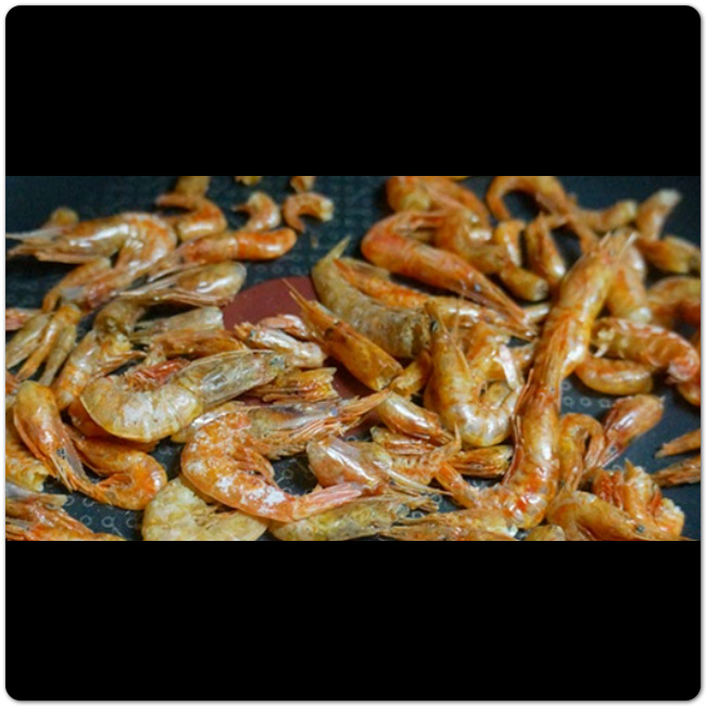 이 때 나오는 가루는 그냥 털어내주면 됩니다. 건새우는 대부분 냉장보관이나 냉동보관되있을 것이므로 이렇게 한번 마른 팬에 볶아주면 잡내 제거가 됩니다.