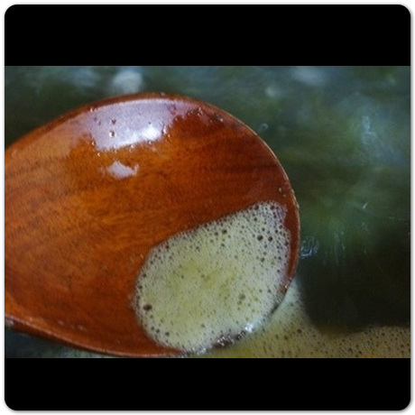 불 켜놓은 채 그대로 놔두면 매생이가 녹아버려서 거품 사이사이 이미 많이 껴있을 수 있습니다. 그럴 때 거품 거둬버리면 매생이까지 같이 나와버리므로 귀찮더라도 매생이국 끓일 때는 거품 생길때마다 바로바로 없애주시기 바랍니다.