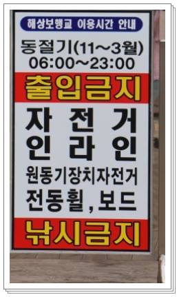 만일 이곳에 낚시를 하기 위해 갈 계획이라면 낚시 또한 금지되어 있으니 이 점도 알아두시기 바랍니다. 개방 시간은 새벽 6시부터 밤 11시까지이기 때문에 야경을 보고 싶다면 저녁 늦게 가보시기 바랍니다.