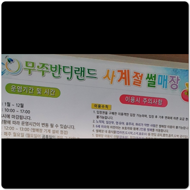 반디랜드 내부에는 곤충관도 함께 있으니 그 곳도 함께 겸해서 관람하고 오면 됩니다. 현재 겨울 반디랜드는 눈썰매장을 운영하고 있습니다. 눈썰매장 뿐만 아니라 무주 반디별 천문 과학관도 있으니 아이들과 무주에 간다면 꼭 이곳도 다녀가보시기 바라니다.