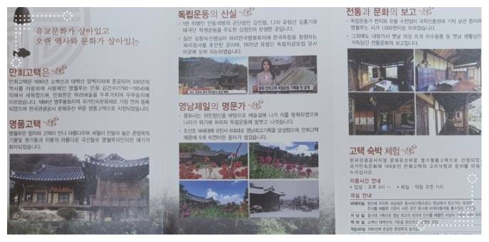 또한, 최고의 길지로 익히 유명한 마을입니다. 다만, 이 마을은 실제 사람들이 거주하고 있는 마을이므로 관람할 때 집 내부 안으로 들어가서는 안됩니다. 마을 내부는 산책하기 정말 좋은 장소이므로 봉화 여행 시 이곳도 다녀가보시기 바랍니다.