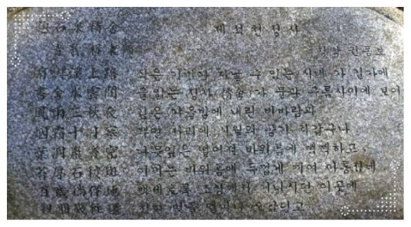 석천 정사는 조선 중기 문신이었던 권동보가 지었으며 현재 명승 제 60호로 알려져 있습니다. 석천정사도 멋지지만 산책하면서 들리는 물소리와 새소리 역시 힐링 되는 느낌입니다. 중간중간 쉴 수 있는 벤치도 꽤 있으므로 석천정사도 들렸다가보시기 바랍니다.