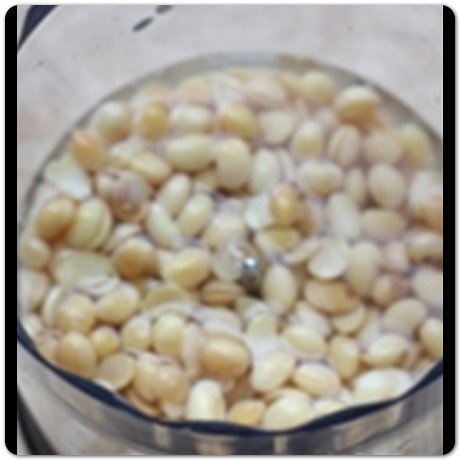 껍질을 다 벗겨냈다면 이제 콩을 삶아주도록 합니다. 냄비에 물을 붓고 콩을 넣은 뒤 삶아주면 됩니다. 콩이 다 익엇다면 믹서기에다가 익은 콩을 넣은 뒤 그대로 갈아주면 됩니다. 물을 조금만 붓고 갈면 콩이 익은 상태이므로 쉽게 갈아낼 수 있습니다. 물 양이 너무 많으면 안되므로 어느정도 질퍽질퍽한 상태가 될 수 있도록, 갈릴 정도로만 물을 넣어주면 됩니다. 이렇게하면 콩비지 만드는 과정은 끝나는 셈입니다.