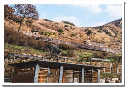 굳이 캠핑을 하지 않아도 주변 산책로 데크가 잘 조성되어 있어서 가볍게 산책하기에도 좋은 곳입니다. 데크는 오솔길로 잘 조성되어 있으며 주변 경관이 예쁘기 때문에 가볍게 운동화나 등산화 차림으로 황매산 미리내 파크 주변 둘러보시기 바랍니다.