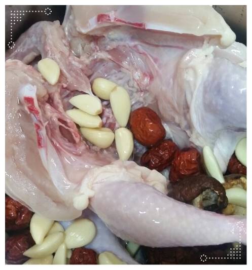 첫 번째로 전기밥솥 활용한 방법입니다. 밥 지을 때처럼 취사만 누르면 간편하기 때문에 재료 준비하는 과정만 잘 하면 됩니다. 준비한 닭을 깨끗하게 씻고, 마트에서 산 한약재 및 마늘, 대추도 깨끗하게 씻도록 합니다. 마늘이 많이 들어간 삼계탕을 좋아한다면 통마늘을 10개정도 넣어주면 좋습니다.