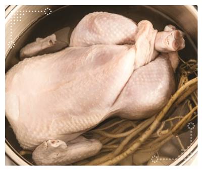 팁 삼계탕은 닭의 기름기가 없어야 담백하고 맛있습니다. 닭의 기름기는 목덜미 부분, 그리고 똥집, 그리고 닭 날개 끝부분입니다. 이 부분은 가위로 싹둑싹둑 잘 잘라주시기 바랍니다. 깔끔한 국물맛을 원한다면 통마늘을 얇게 썰어서 준비해도 좋습니다.