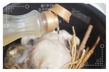 이 작업까지 마무리한 후 미림을 2스푼 정도 다시 넣어주면 됩니다. 대략 40분 정도 취사하면 되기 때문에 '잡곡' 기능으로 취사를 하거나 '찜' 기능을 활용해서 취사버튼 눌러주면 됩니다. 이렇게 하면 삼계탕 맛있게 끓이는 방법 간편하게 해결할 수 있습니다.