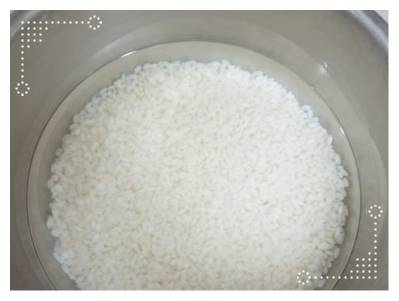 닭 손질 전 2번 과정을 먼저 해도 됩니다. 미리 준비한 찹쌀 및 쌀 반컵을 깨끗하게 씻은 후 대야에 담아서 대략 30분 정도 충분히 불려주는 작업을 합니다. 충분히 불려줘야 찹쌀 및 쌀 속에 있는 영양소가 골고루 나오기 때문에 이 작업도 꼭 놓치지 않도록 합니다.