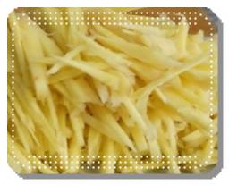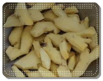 고루고루 생강의 모든 껍질을 다 벗겨냈다면 다시 한 번 더 세척한 뒤 마지막으로 한 번 더 점검합니다. 모든 껍질이 전부 없어졌다면 이제 생강을 썰도록 합니다. 생강은 되도록이면 잘게잘게 잘라주도록 합니다. 모양을 예쁘게 낼 필요도 없고, 믹서기에 바로 갈 것이므로 믹서기에 갈릴 정도로만 썰어주면 됩니다.