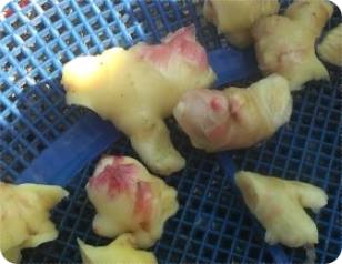 분류작업을 할 때 생강이 썩은 부분이 있다면 그런 부분은 절대로 보관하지 않도록 합니다. 생강은 조금이라도 썩었다면 먹지 않아야 합니다. 대부분 썩은 부분만 잘라내고 나머지는 활용하려고 하지만, 생강이 썩었다면 이미 이 생강은 독성물질인 사프롤·아플라톡신이 생성된 생강입니다.