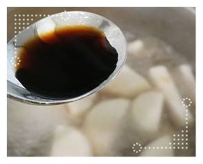 물이 끓기 시작하면 이제 양념을 넣어주도록 합니다. 먼저 국간장을 1큰술 넣어줍니다. 너무 많이 넣으면 맑은 국물 색이 사라지기 때문에 간장은 1스푼 정도만 넣어주도록 합니다.