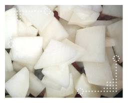 무가 많이 들어가야 시원하고 맛있습니다. 그래서 먼저 무를 손질하도록 하겠습니다. 무는 깨끗하게 씻고난 뒤, 겉 껍질을 벗겨내서 네모난 나박썰기를 합니다. 소고기무국 맛있게 하는법 무는 최대한 얇게 썰을수록 좋답니다. 양념이 고루고루 잘 들어가기 때문에 너무 두껍게 썰지 말고 최대한 얇게 썰어주세요.