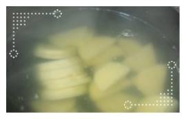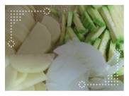 멸치 육수를 내고 있을 때 3번 과정을 진행해주면 됩니다. 미리 준비한 양파, 애호박, 감자를 손질할 차례입니다. 감자는 반으로 갈라서 먹기 좋은 크기로 썰어주고 양파는 채썰어주면 됩니다. 애호박은 씹는 식감이 살아날 수 있게 조금 두껍게 썰어도 상관 없습니다.