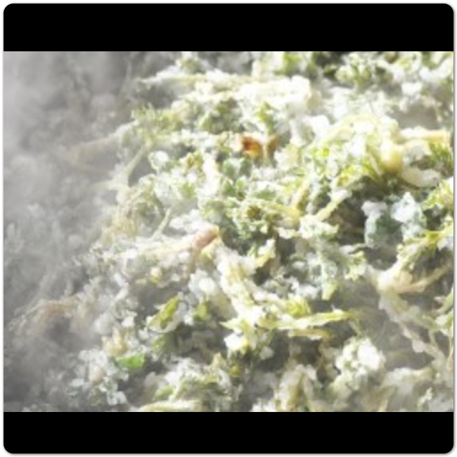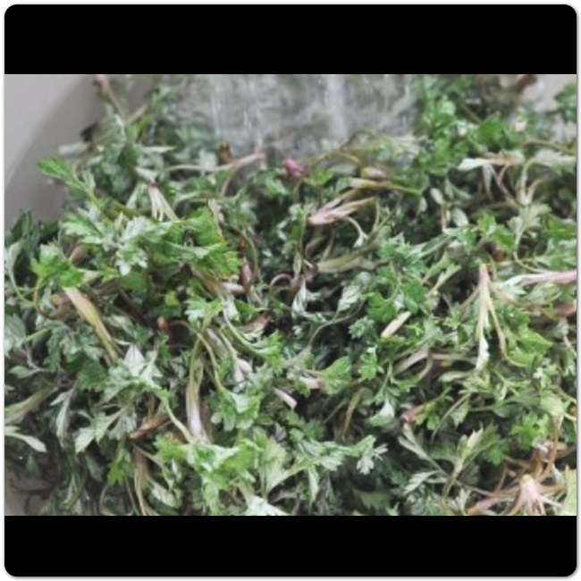 5분 뒤에, 쑥을 대야에서 꺼낸 뒤 흐르는 물에 2번정도 다시 한 번 꼼꼼하게 씻어주도록 합니다. 이때는 살살 쑥을 문질러가면서 씻으면 좀 더 깨끗하게 씻을 수 있습니다. 그 뒤 ,채망에 쑥을 올린 뒤 물기를 제거해주도록 합니다.