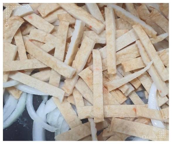 (대파는 어떤 요리든 항상 마지막이기 때문에 대파는 이 때 넣지 않습니다.) 야채를 먼저 볶고난 후, 야채가 조금 익은 것 같으면 바로 어묵을 넣어줍니다.