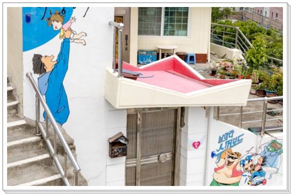 다음 장소는 고소동 벽화마을입니다. 위치는 전라남도 여수시 고소동 268에 위치하고 있습니다. 벽회마을은 생각보다 넓고 각각의 존마다 테마가 다른 그림이 그려져 있습니다. 만화를 좋아하는 분들이라면 고소동 벽화마을에 가서 다양한 만화 주인공들이 그려져 있는 벽화들을 관람하고 오시기 바랍니다.