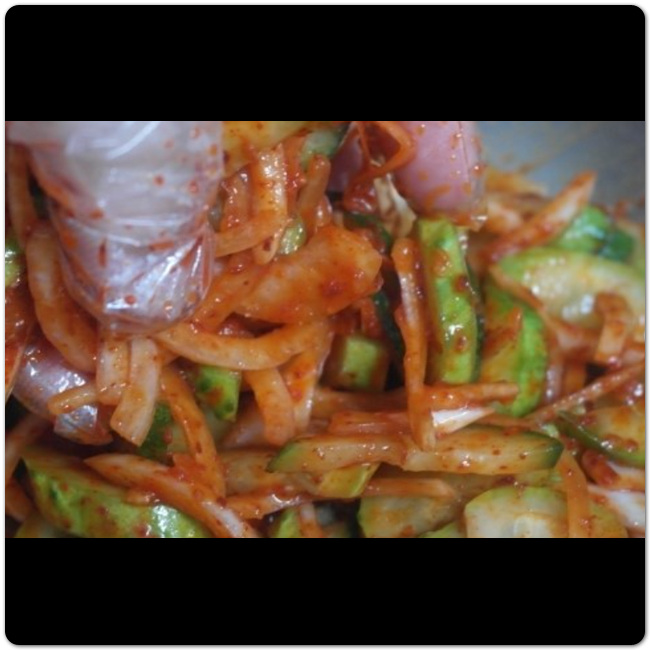 오이무침 황금레시피 양념장을 만들었다면 이제 볼에 오이와 양파를 넣어둡니다. 그리고 미리 만들어둔 양념장을 넣으면서 고루고루 비벼주도록 합니다. 처음부터 양념장을 한꺼번에 다 넣지 않고 조금씩 넣으면서 무침을 완성해주면 됩니다. 이렇게 하고 남은 양념은 다음 오이무침을 만들 때 따로 활용하면 됩니다.