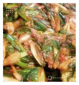 7. 부추넣고 양념장 비비기