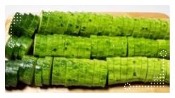 열탕소독하는 과정 중 양파와 오이를 썰면 됩니다. 크기는 정해지지 않았지만 한 입으로 먹기 좋은 크기면 괜찮습니다. 아이가 먹을 오이피클이라면 조금 더 잘게 잘라주면 됩니다.