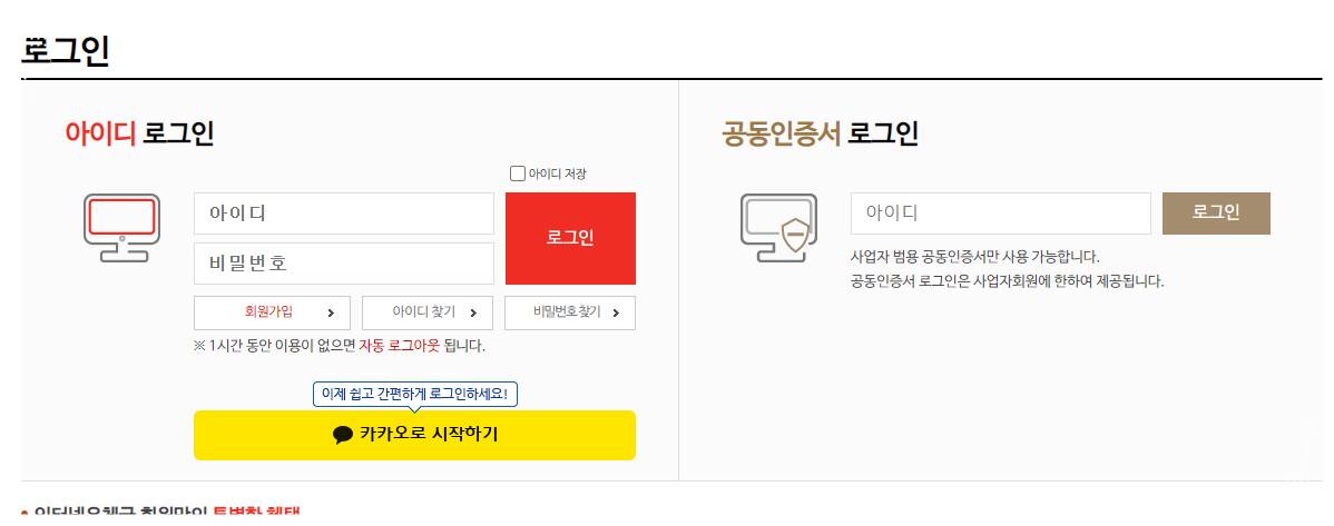회원가입이 되어 있지 않다면 회원가입을 진행합니다. 아이디로 로그인하는 게 편하다면 아이디로 로그인하는 방식을 선택해서 회원가입을 합니다. 만일 공인인증서 사용이 더 편하다면 공인인증서를 활용해서 로그인해주시기 바랍니다.