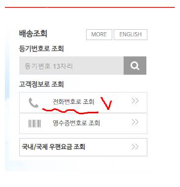 우체국 등기조회를 위해 로그인을 했다면 메인 화면의 고객 정보로 조회를 선택합니다. 고객 정보로 선택은 전화번호로 조회하는 방법과 영수증 번호로 조회하는 방법이 있습니다. 영수증 번호를 모르고 있다면 위의 전화번호로 조회를 눌러서 내 핸드폰 번호를 누른 후 조회합니다.