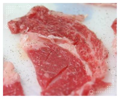 만일 정육점이나 마트에서 딱 한 입 크기로 적당하게 나왔다면 2번 과정은 생략해도 됩니다. 만일 그게 아니라면 핏물 제거하고 난 뒤 고기를 한 입크기로 적당하게 잘라주는 작업을 해두는 게 좋습니다.
