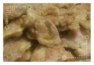 이제 육전 맛있게 만드는법 90%는 완성입니다. 밑간 시간이 지났다면 고기를 하나하나 떼서 밀가루를 먼저 입혀줍니다. 이때도 한 곳에만 밀가루가 과다하게 뭉치지 않게 밀가루 묻히면서 살살 털어주는 작업도 합니다. 밀가루를 앞뒤로 고루고루 입히고 난 뒤 바로 계란을 푼 볼에 담가줍니다.