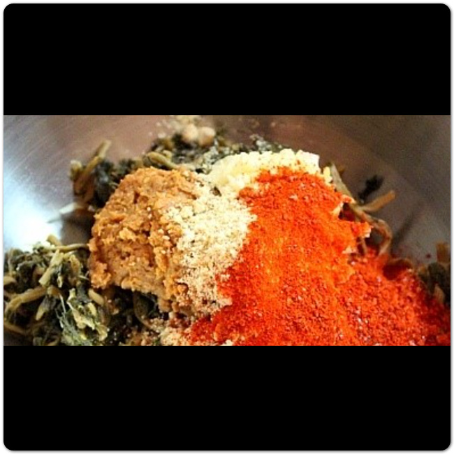 이렇게 한 볼에 넣어서 고루고루 잘 섞은 뒤 시래기에 골고루 무쳐주면 됩니다. 이렇게 무치고 나서 냉동실에 소분해두면 시래기 된장국만 해먹을 때도 간편하게 냉동실에서 꺼내서 먹을 수 있으니 편리합니다.
