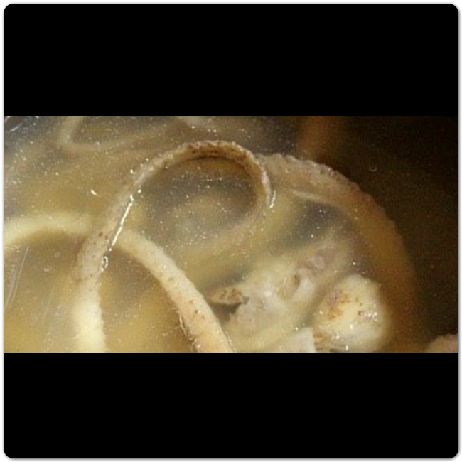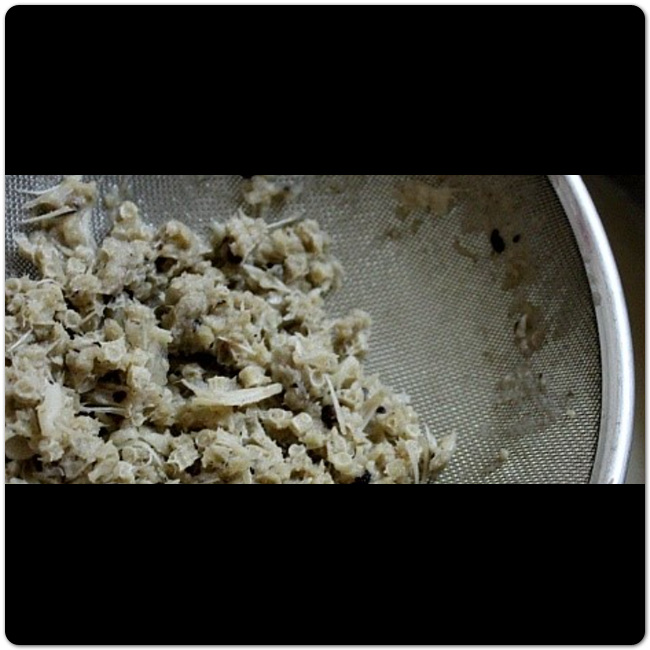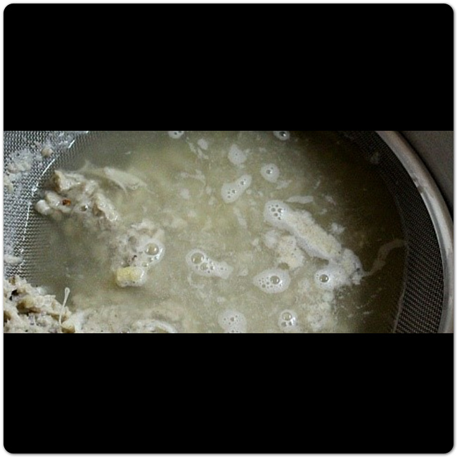 장어탕 끓이는법 믹서기나 핸드블랜더를 활용해도 굵은 뼈는 대부분 갈아지지 않습니다. 그래서 이런 것들만 체로 건져내서 따로 빼두면 됩니다.