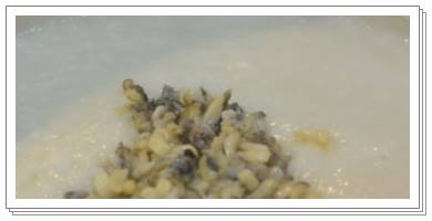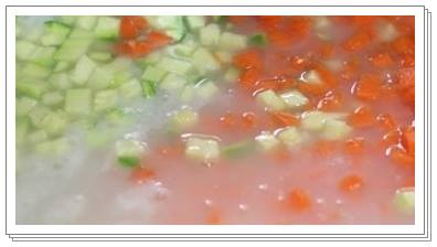 최대한 작게 자를수록 전복죽 먹을 때 야채와 함께 씹히는 전복맛이 느껴져서 좀 더 맛있게 먹을 수 있습니다. 야채와 전복을 함께 넣고난 뒤 약불에서 또 저어주면서 끓여주도록 합니다. 죽은 만들기까지 계속 저어주는 과정이 필요하기 때문에 잘 저어주면서 중간에 간을 한 번 보도록 합니다. 만일 싱거운 맛이 느껴진다면 소금을 넣어서 입맛에 알맞게 해주시기 바랍니다.